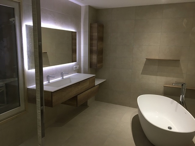 Nous étudions vos projets sur mesure en nous adaptant à votre pièce afin de permettre l'intégration parfaite d'un meuble de salle de bains, d'une douche, d'une baignoire et harmoniser cet ensemble avec le carrelage et l'ambiance souhaitée.